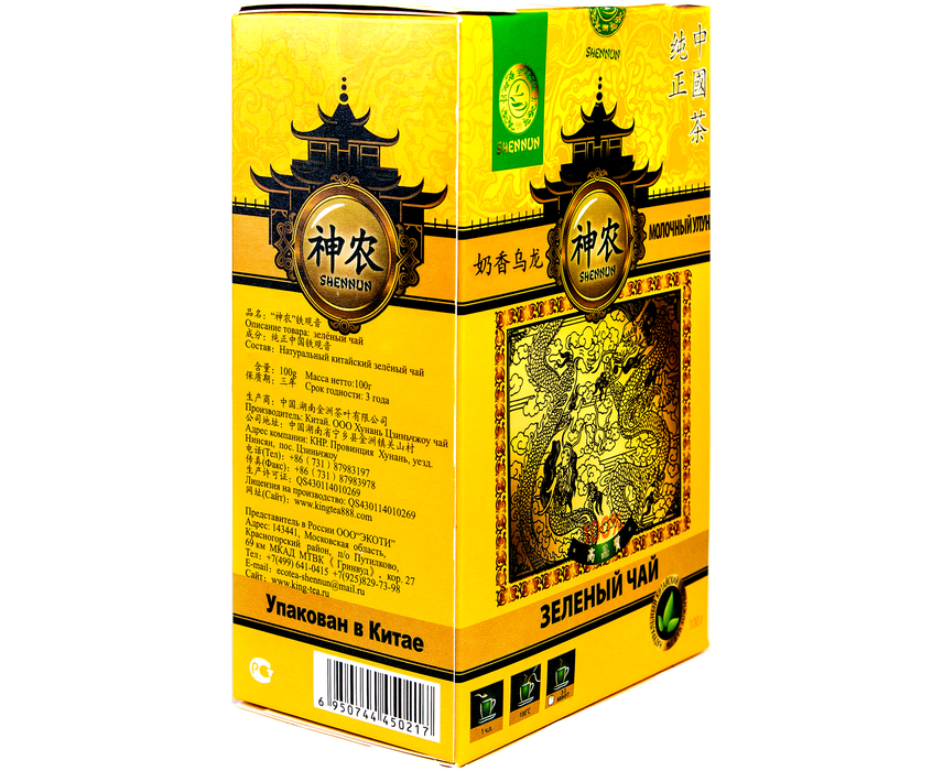 Китайский зеленый чай Шеннун-Молочный Улун, бережно выращен и собран в провинции Хунань в экологически чистом районе без применения химических удобрений и пестицидов.Чай имеет необычную спиралевидную форму. Чай имеет яркий цвет,тонкий молочный аромат и сладкое послевкусие.